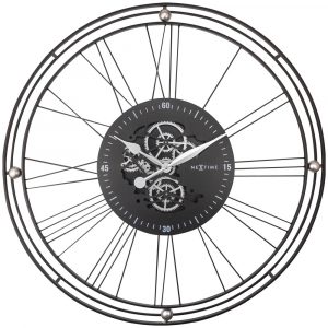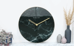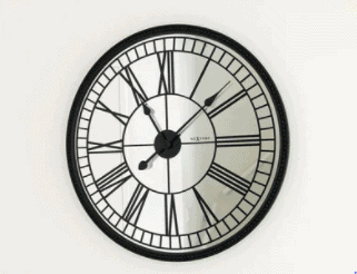 The Cleopatra Mirror is a large (56cm) round wall clock. The mirror clock has a black plastic case, a printed black roman index and romantic style hands. This clock is silent works on 1 AA battery (not included).