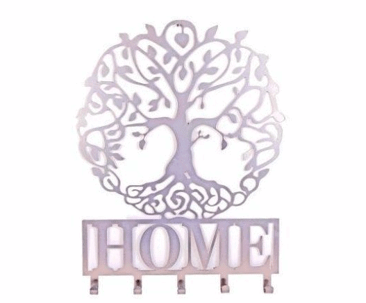 A ‘Home’ quotation coat hook with the popular Tree Of Life feature in silver.