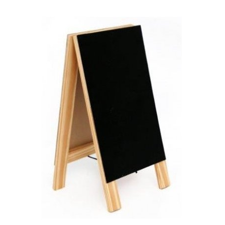 A Mini Standing Chalkboard with a natural wooden framing