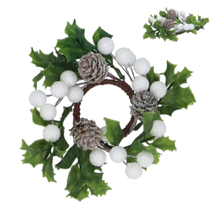 Acrylic Candle Ring 17cm - White Snowberry/Cone