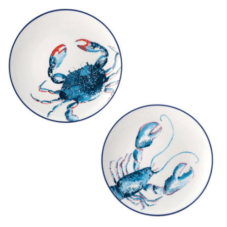 Only the crab design left! These side plate are a perfect addition to your table top. The plate features a crab or a lobster which is painted with ink for a vibrant finish. The navy blue band gives a further nod to nautical to sit within the Dish of the Day collection. This item will make an ideal gift for someone special. Co-ordinating items are available.