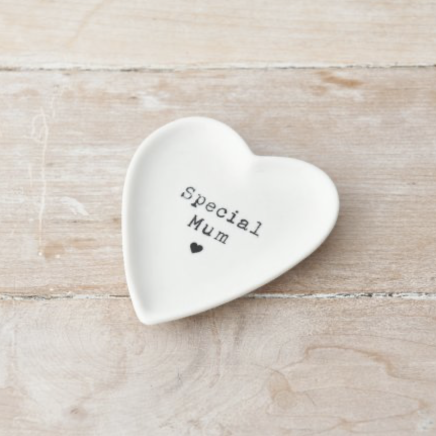 A chic heart shaped trinket dish with a 'Special Mum' slogan.