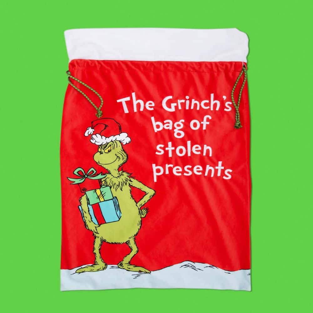 - Embroidered THE GRINCH'S BAG OF STOLEN PRESENTS text