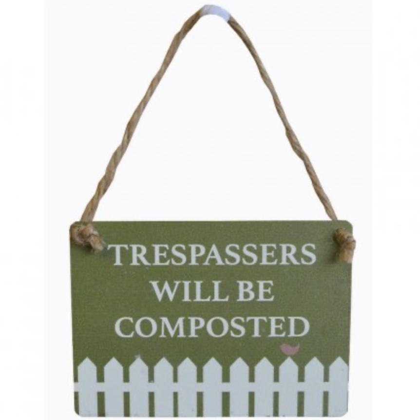 Be the first to review “Trespassers Will Be Composted Mini Metal Sign”