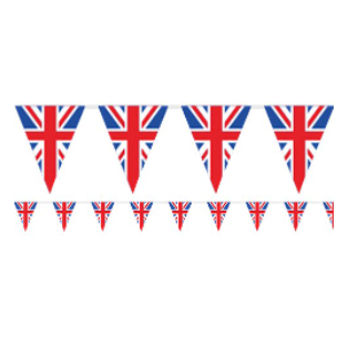 Card Bunting on white ribbon Great for walls, windows, or doorways 40 Flag pennants ( each 14cm W x 17cm L)