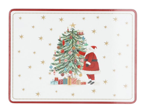 Wood Cork Base Placemat 21cm - Nostalgia Santa/Tree set of 4